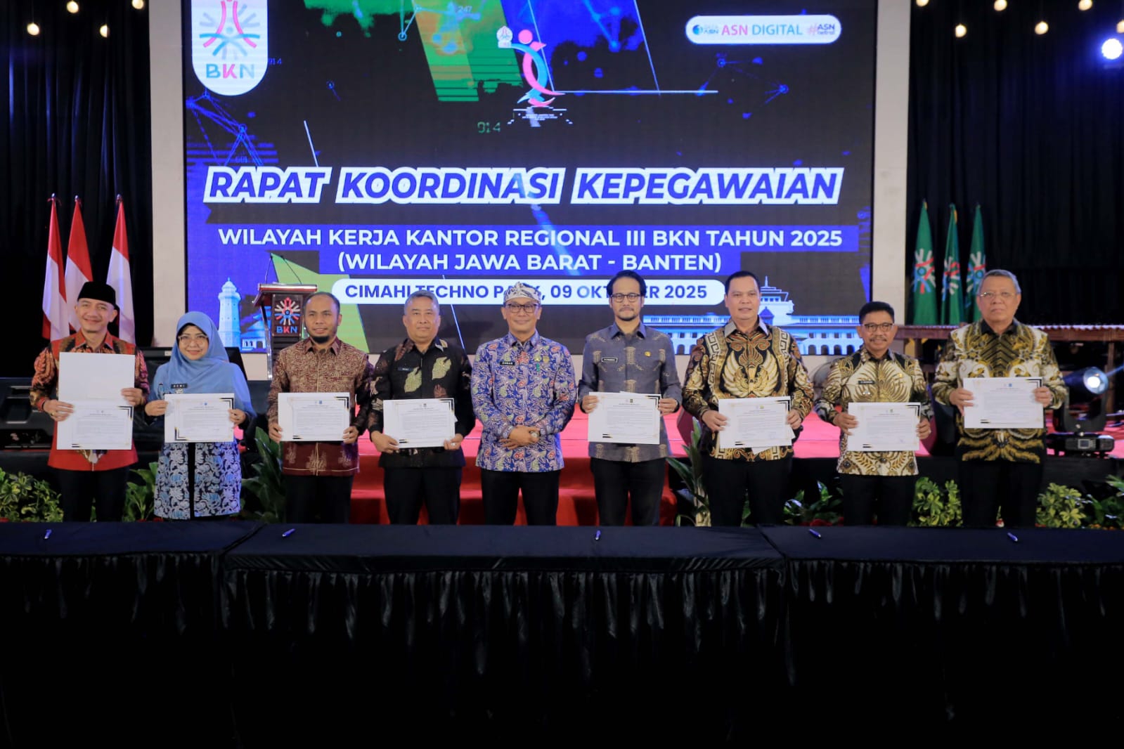 Komitmen tersebut ditunjukkan melalui penandatanganan dokumen “Komitmen Manajemen Talenta” pada Rapat Koordinasi (Rakor) Kepegawaian Wilayah Kerja Kantor Regional III BKN Tahun 2025 (Wilayah Jawa Barat–Banten) yang berlangsung di Cimahi Techno Park, Jawa Barat, Kamis (09/10/2025).